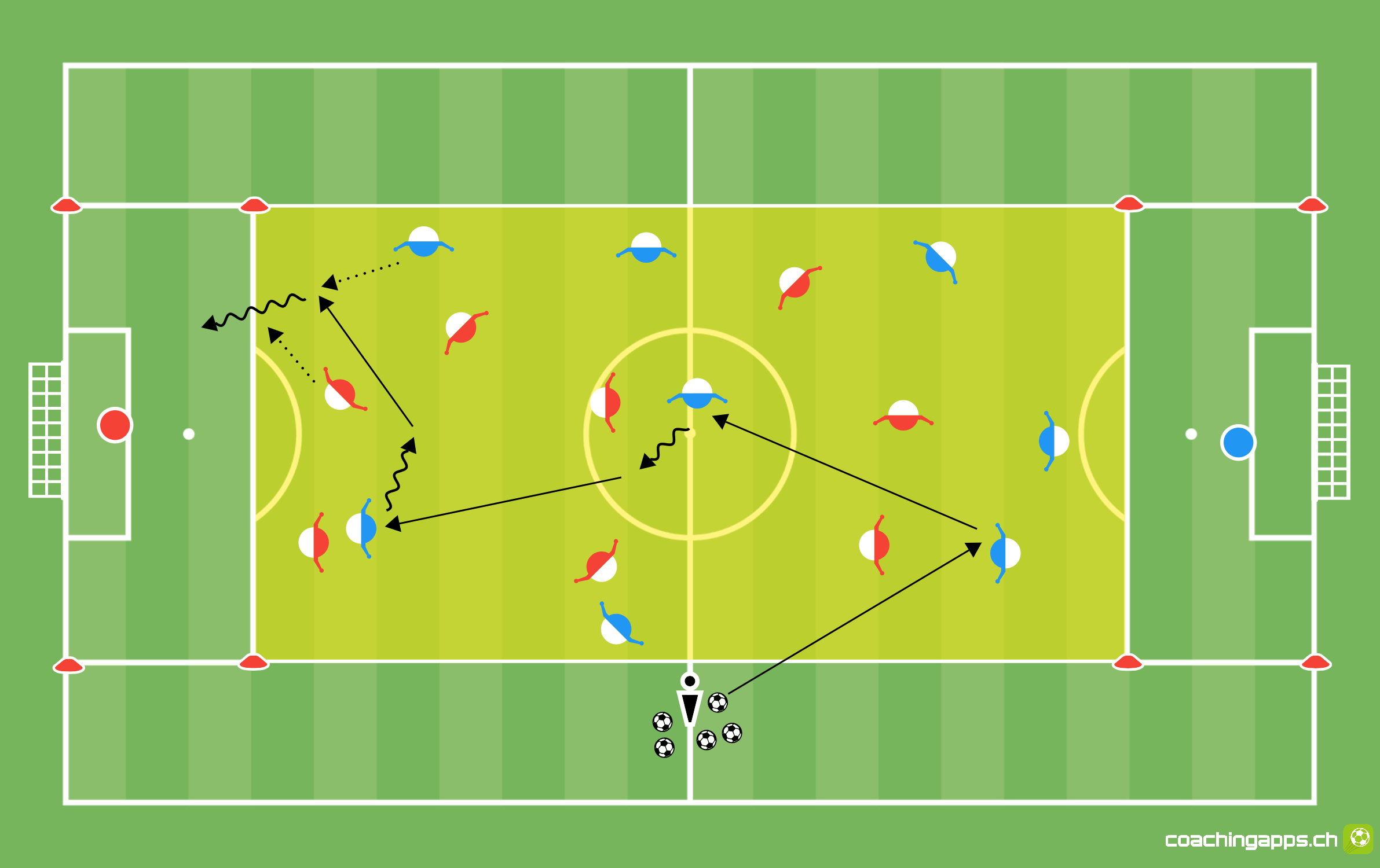 Sobald ein Spieler in die Abschlusszone gelangt, wird der nächste Ball ins Zentrum gespielt. So bleibt die Intensität hoch.