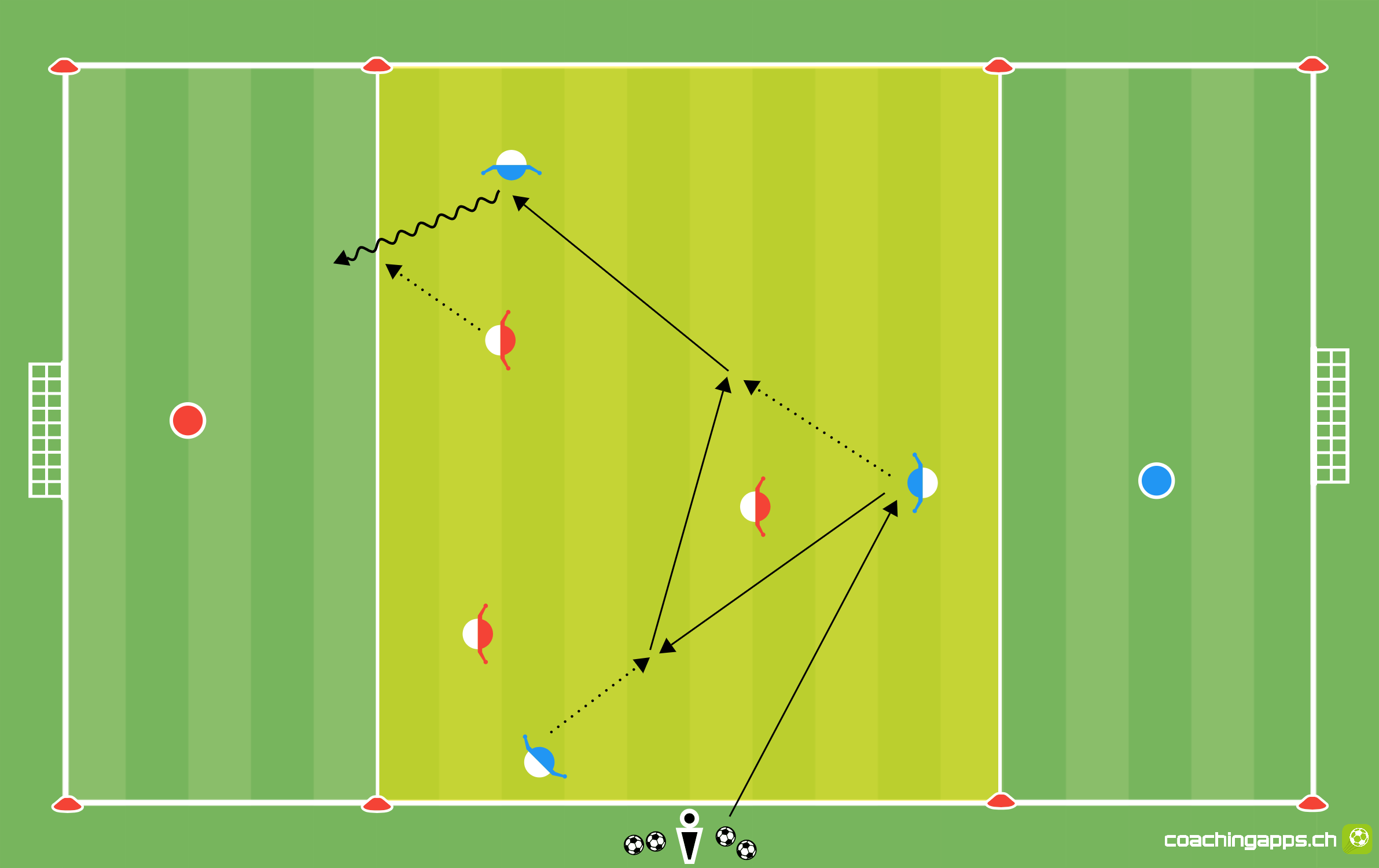 Sobald ein Spieler in die Abschlusszone gelangt, wird der nächste Ball ins Zentrum gespielt. So bleibt die Intensität hoch.