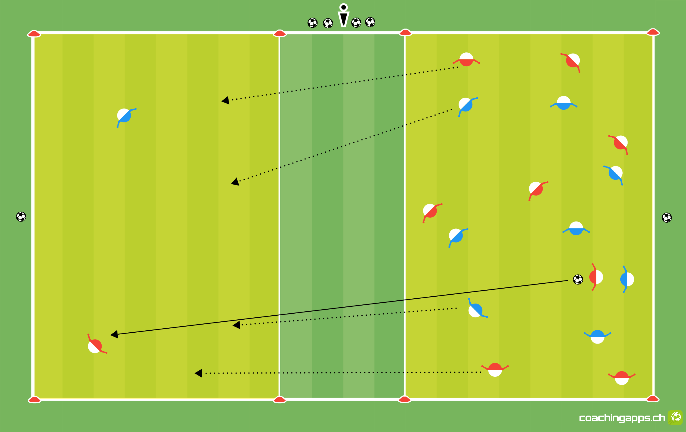 Ausdauer-Spielform. Ballhalten. Spielverlagerung.